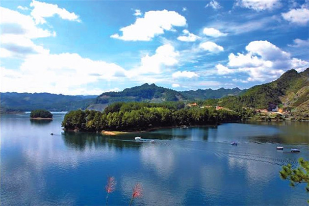 黔江小南海位于重庆市黔江区城北约60华里处,是一个因地震而形成的堰塞湖,距今已有157年的历史了。小南海水域面积近3平方公里,景区山水相依、秀峰环列,水面汊港纵横、波光粼粼,海口奇石林立、溪水萦回。是渝东南武陵山区难得一见的湖滨美景。最重要的是,这里的气候常年温和湿润,尤其在夏季真是凉爽至极,最高温度不会超过30℃,避暑之行选这个地方那是绝对错不了的。