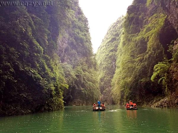 从舟子沱乘舟而下,沿途可见各种各样的峡谷地貌:有状若擎天的石笋、嬉戏的猴群、庄严的石佛、深不可测的溶洞、貌似罗汉的石笋。整个阿依河彭水河段水体资源极为丰富,其中尤以七里塘河段和儿塘河河段的水体景观最为独特,江面绿水清幽,两岸翠竹环绕。