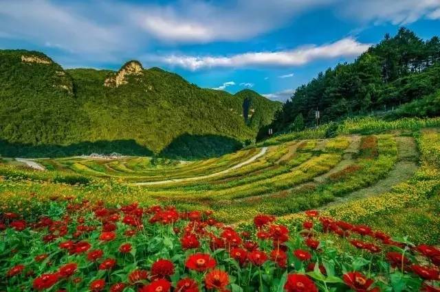 红池坝位于巫溪文峰镇,有云中花海、天子城草海、西流溪湿地、团城峡谷、十二垭山地、度假区等六大区域50余个景点,是一个赏花游玩好去处。