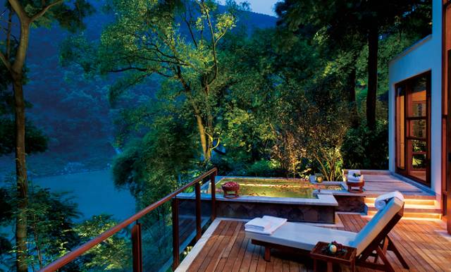 亚洲最好的SPA园林温泉及超五星级的全球小型经典豪华度假酒店——这个定位,听起斗霸气,环境也不得撇,背靠古寺,清幽安静。