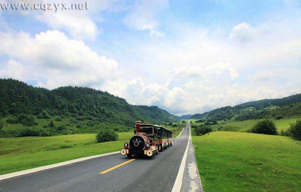 柏油公路延伸至山顶,放眼望去辽阔无比。坐着特色小火车,呼吸着森林公园的负氧离子。