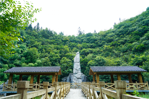 传说这里是当年王母娘娘掉落的乌金天尺残体砸出来的大坑,这个断尺高60尺,宽12尺,呈古铜色,可以尽情想象当它如陨石一般坠入谷底时是怎么样的惊心动魄的画面。
