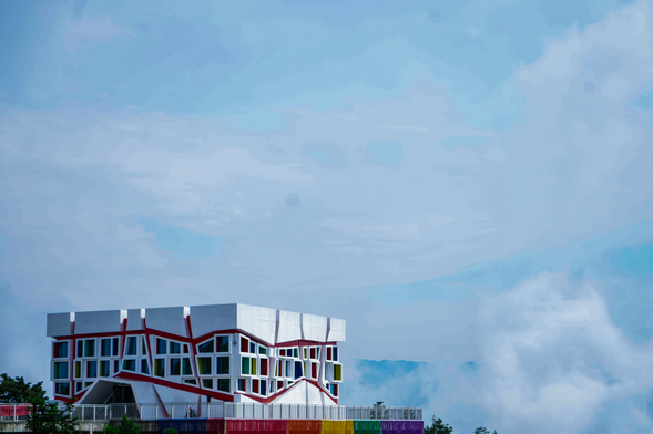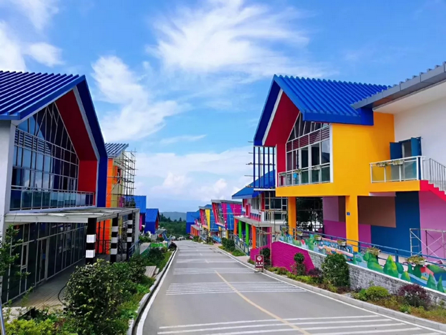 整个浪漫天街的建筑风格以现代、浪漫、时尚风格为主。建筑上部挑空,整体以白色涂料为主,顶部以彩色屋面为主,底部装饰有当地特有的灰色毛石;窗户内侧采用红色,栏杆采用白色,为纯净的街区点缀浪漫的色彩。是白马山爱情圣地的核心标志。这里占地2.7公倾,情侣们可以享受购物,聊天,约会的浪漫。浪漫天街里有表达爱意的真爱礼堂、同心桥、爱情魔方等打卡点,也有情侣餐饮、文创购物商店等。