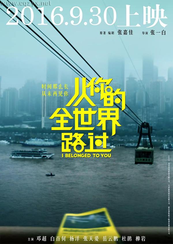 9月29日电影《从你的全世界路过》将正式上映,有网友称,电影的大部分取景地都在重庆,干脆叫《从你的全重庆路过》。导演张一白做电影宣传时就坦言“以前都说重庆像香港,现在我们都不这么说了,重庆可比香港大多了,作为一个重庆人我很骄傲,把家乡城市的变化过程,通过我的镜头记录下来。”